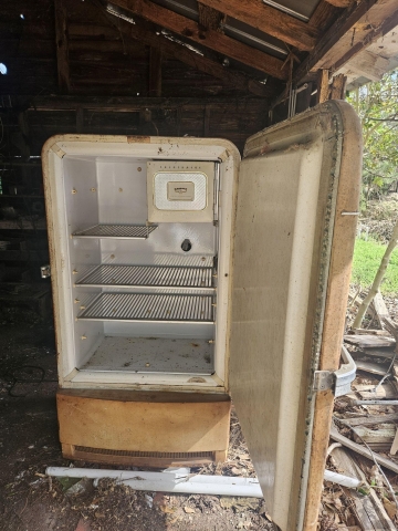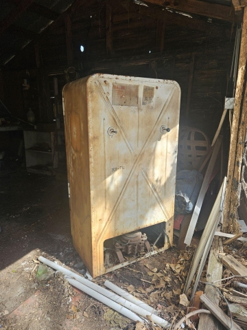 Offered for sale is a vintage late 1940's - early 1950's Frigidaire refrigerator featuring a classic rounded-top design with a latch-style handle. See pics for exact condition. This is a barn find in Eastern NC. Ready for your restoration! $650 OBO